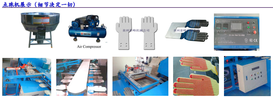 用途:在手套的表面刮上一層PVC顆粒。用以增強手套的防滑及耐用性。